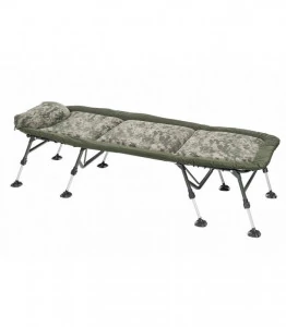 Egy extra könnyű és teljesen lapos bojlis ágy digital camouflage színben! A vastag matrac egy polár külső réteggel maximális kényelmet nyújt a vízparton. Az matrac keménysége állítható a középrészen kialakított heveder segítségével. A teleszkópos lábaknak köszönhetően bármely terepviszonyok között könnyedén beállítható. A Stealth pontyozó ágyak hat, illetve nyolc lábas verzióban érhetőek el.